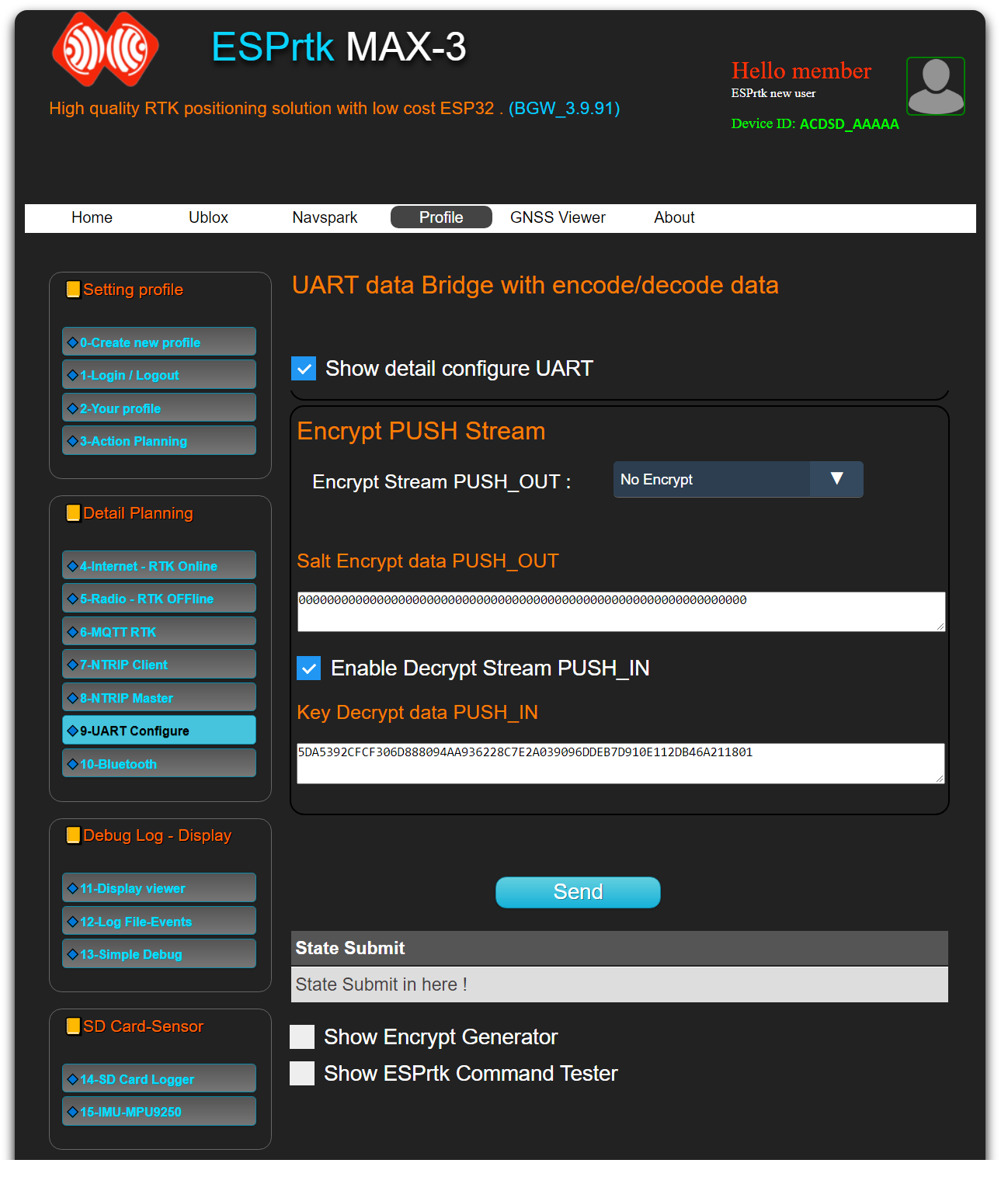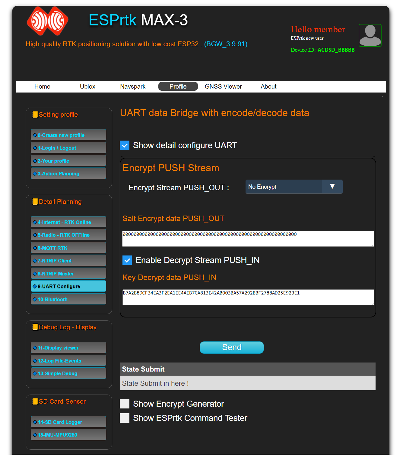 Using this feature will also allow users to commercialize RTCM data from the RTK BASE station (PUSH_OUT) by managing/distributing/selling decryption keys to ROVER side users (PUSH_IN).