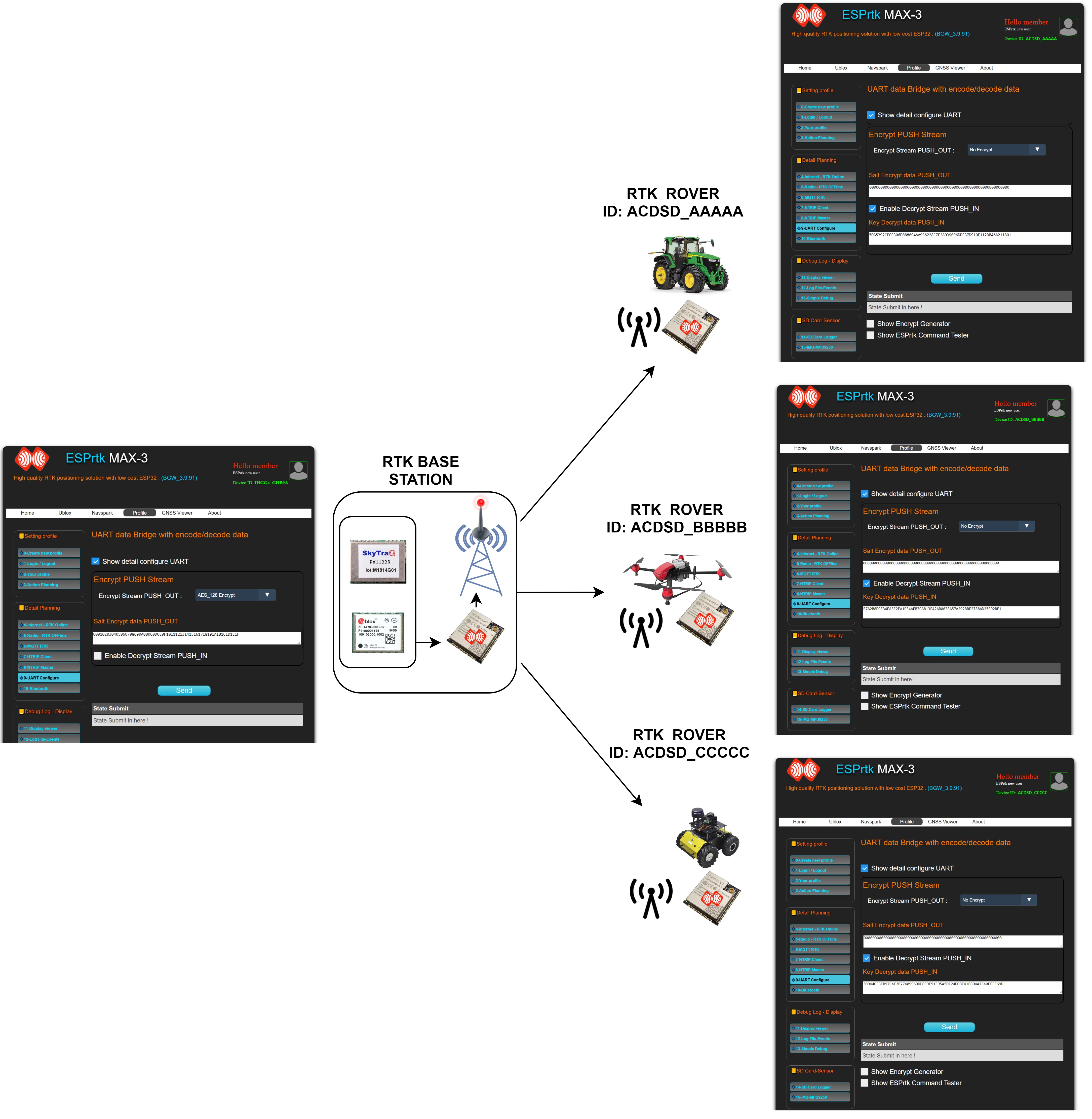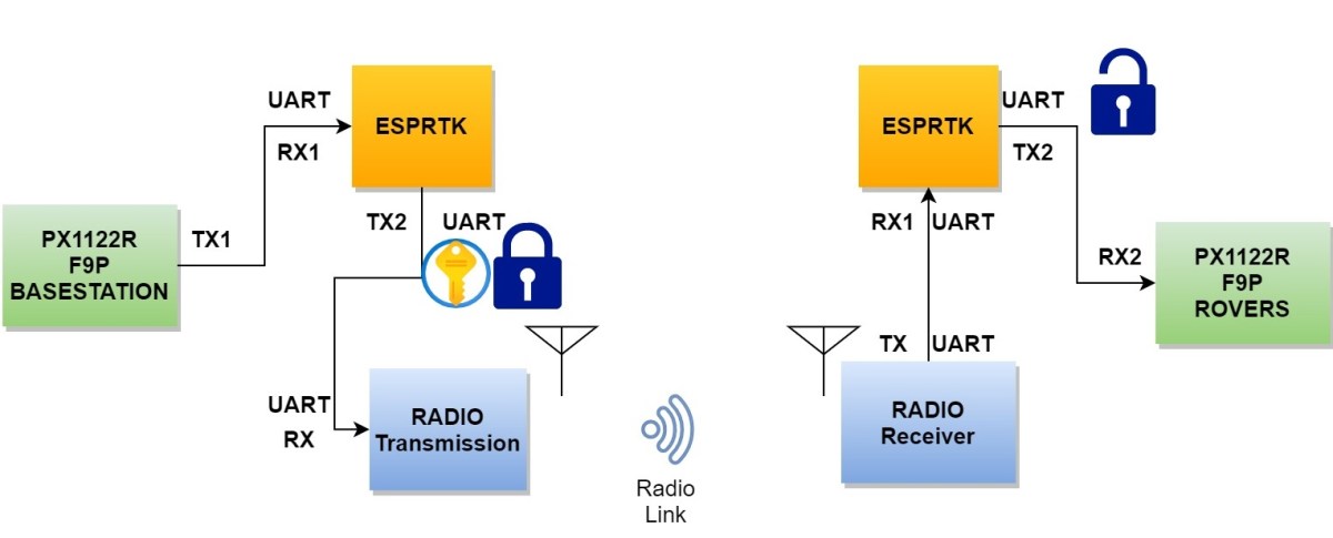 We will build a BASE station to send RTCM data to the Rovers , and RTCM data needs to be encrypted to ensure data security (only Rover side users with valid decryption keys can recover encrypted RTCM data).