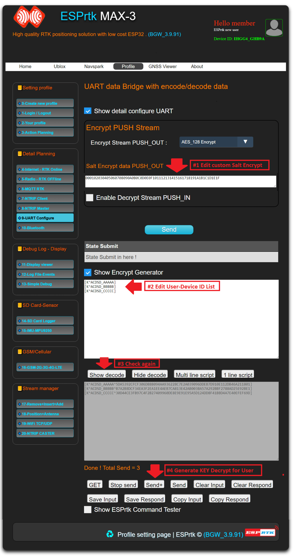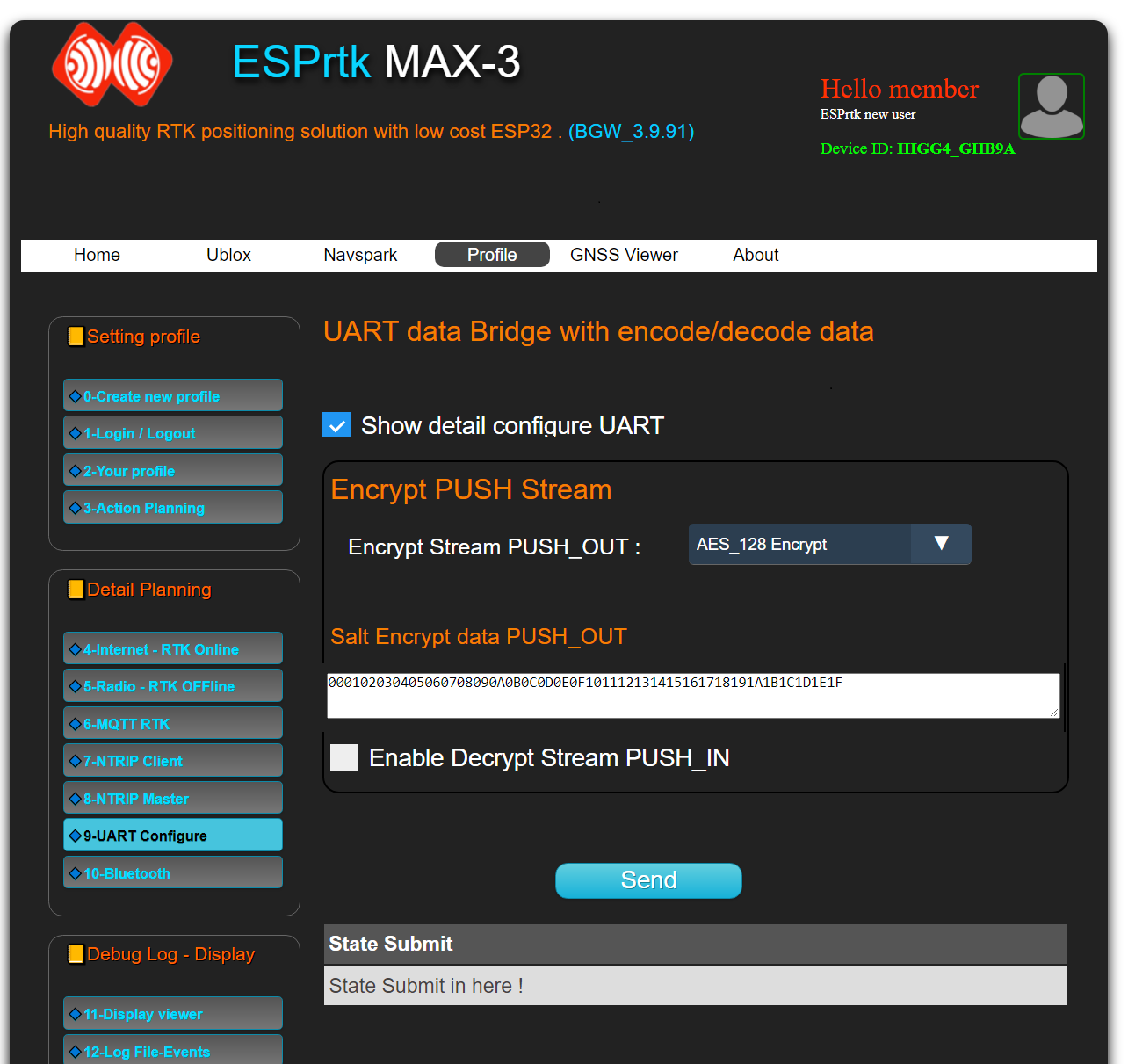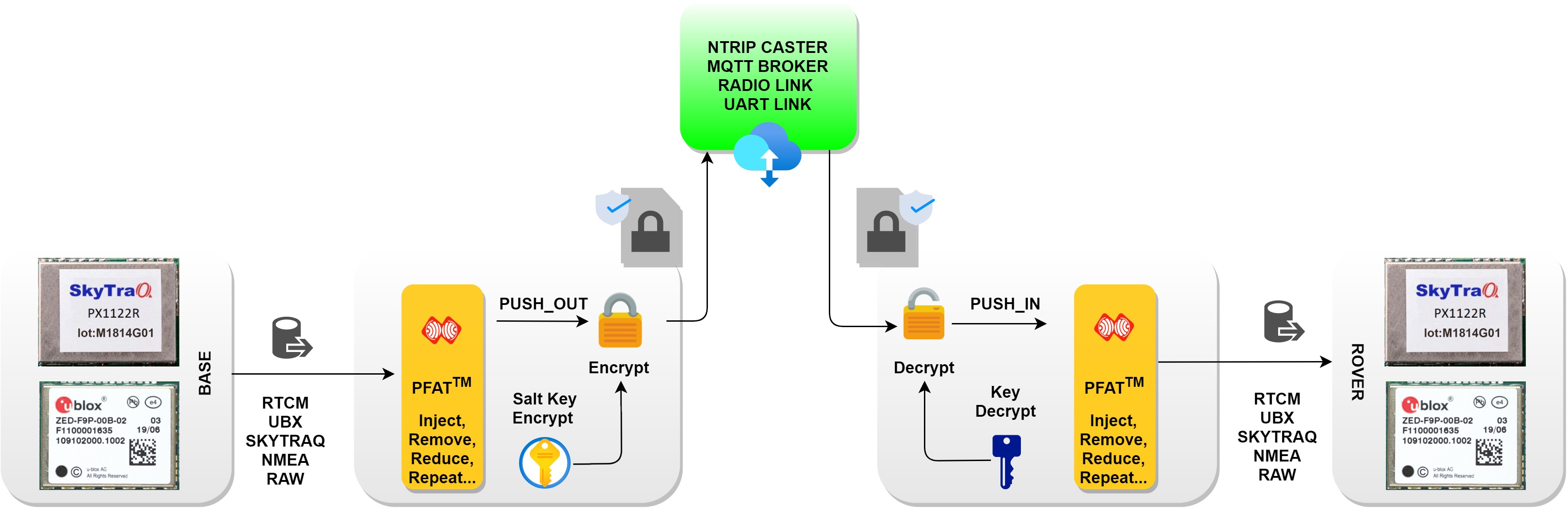 RTCM/UBX/SKYTRAQ/RAW data will be encrypted and encapsulated in ESPRTK encrypted message format before being push out (sent).