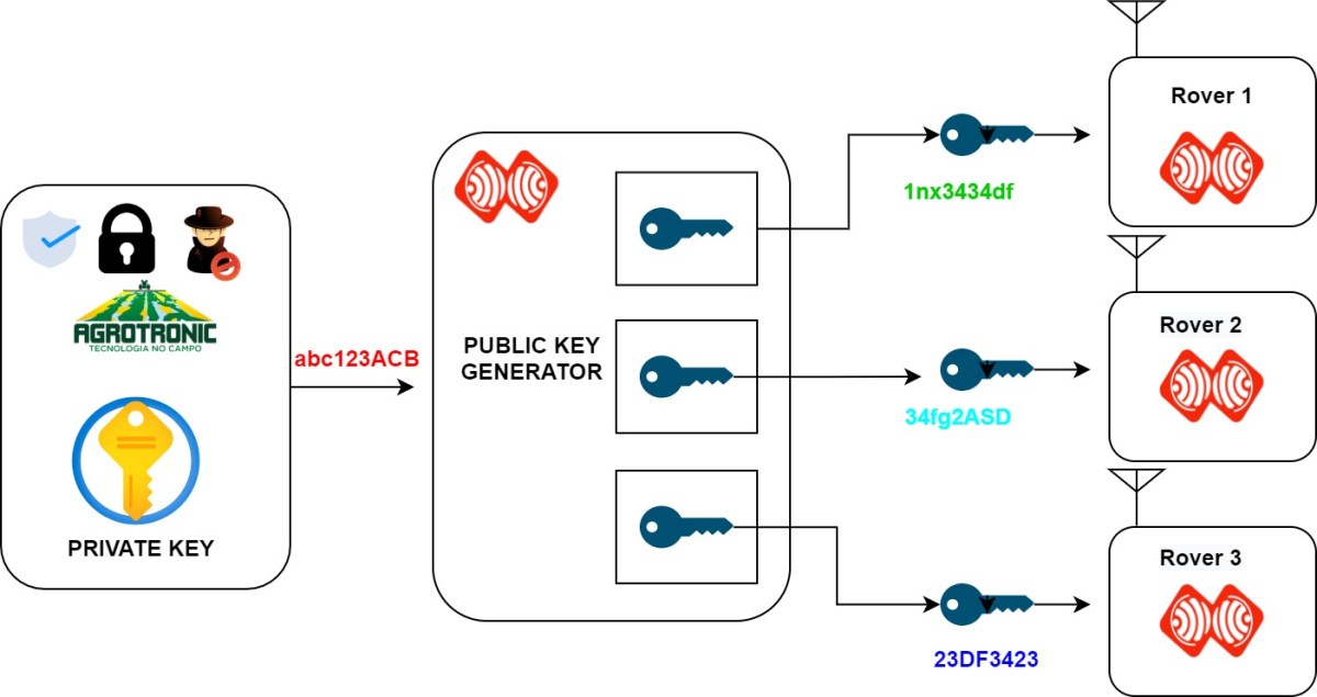 It is not safe to disclosured the Encryption key at the BASE station! It is necessary to change the Encryption key at the BASE station again and generate new keys for the Rovers .