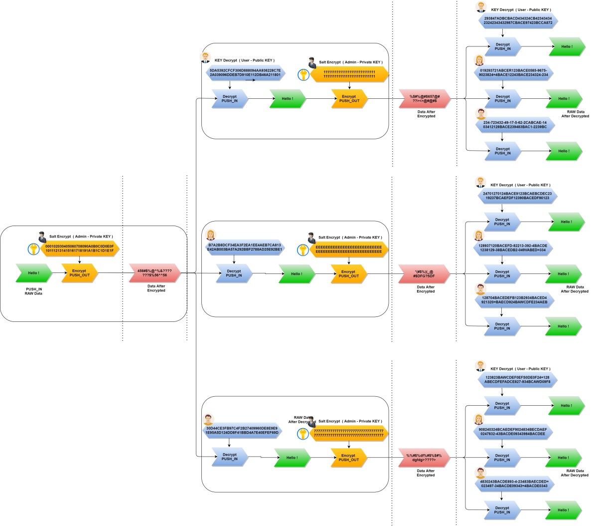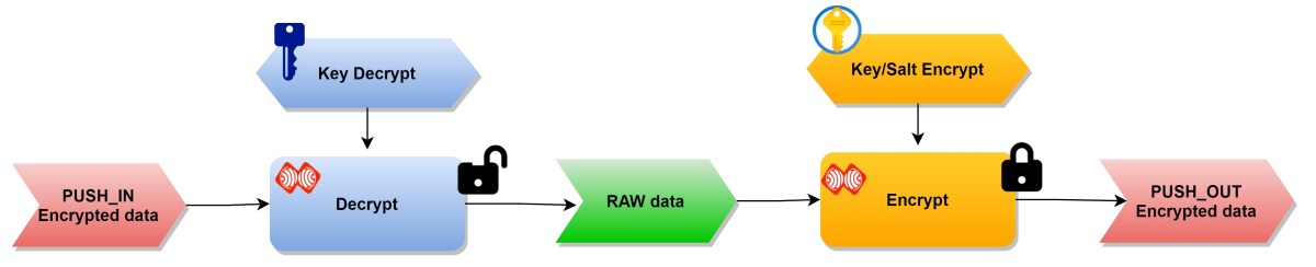 - Decrypt input data and encrypt output data at the same time.