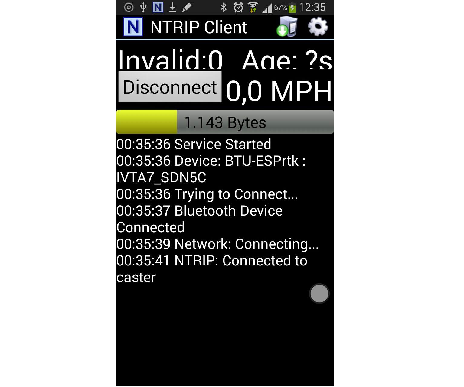 I use the application running on my phone as an external Bluetooth device, the data received and sent will be output on ESPrtk’s TX / RX-UART port and displayed on the screen.