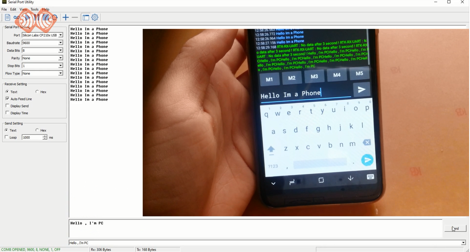 I connected the UART-RTK port to the computer and opened the software to send some text.
