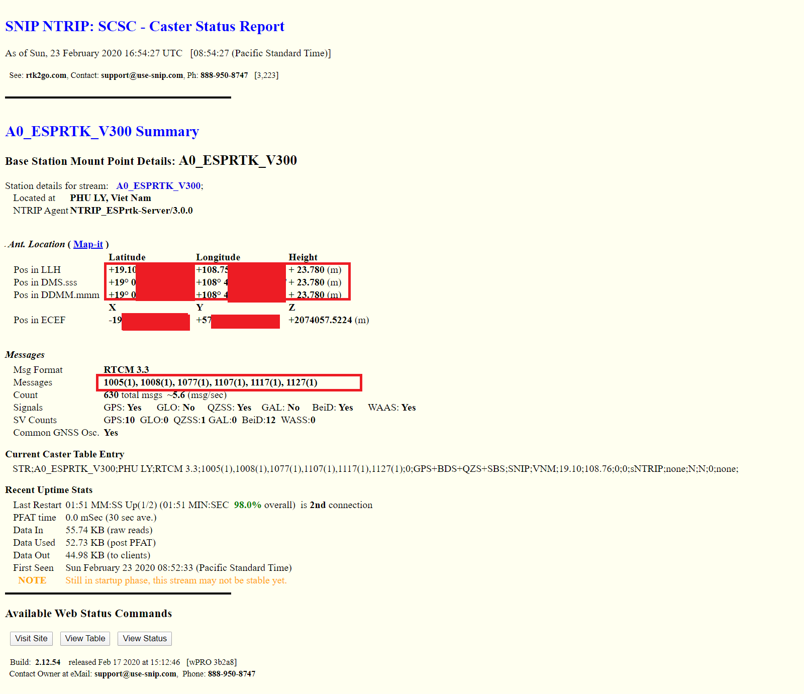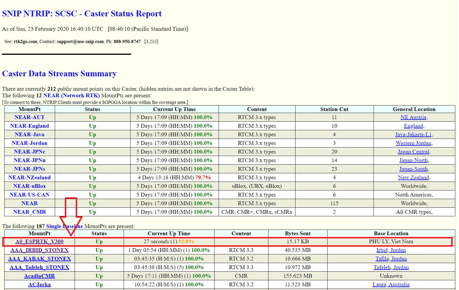 After about 1 minute run, can visit http://www.rtk2go.com:2101/SNIP::STATUS to check Status of your NTRIP Base: