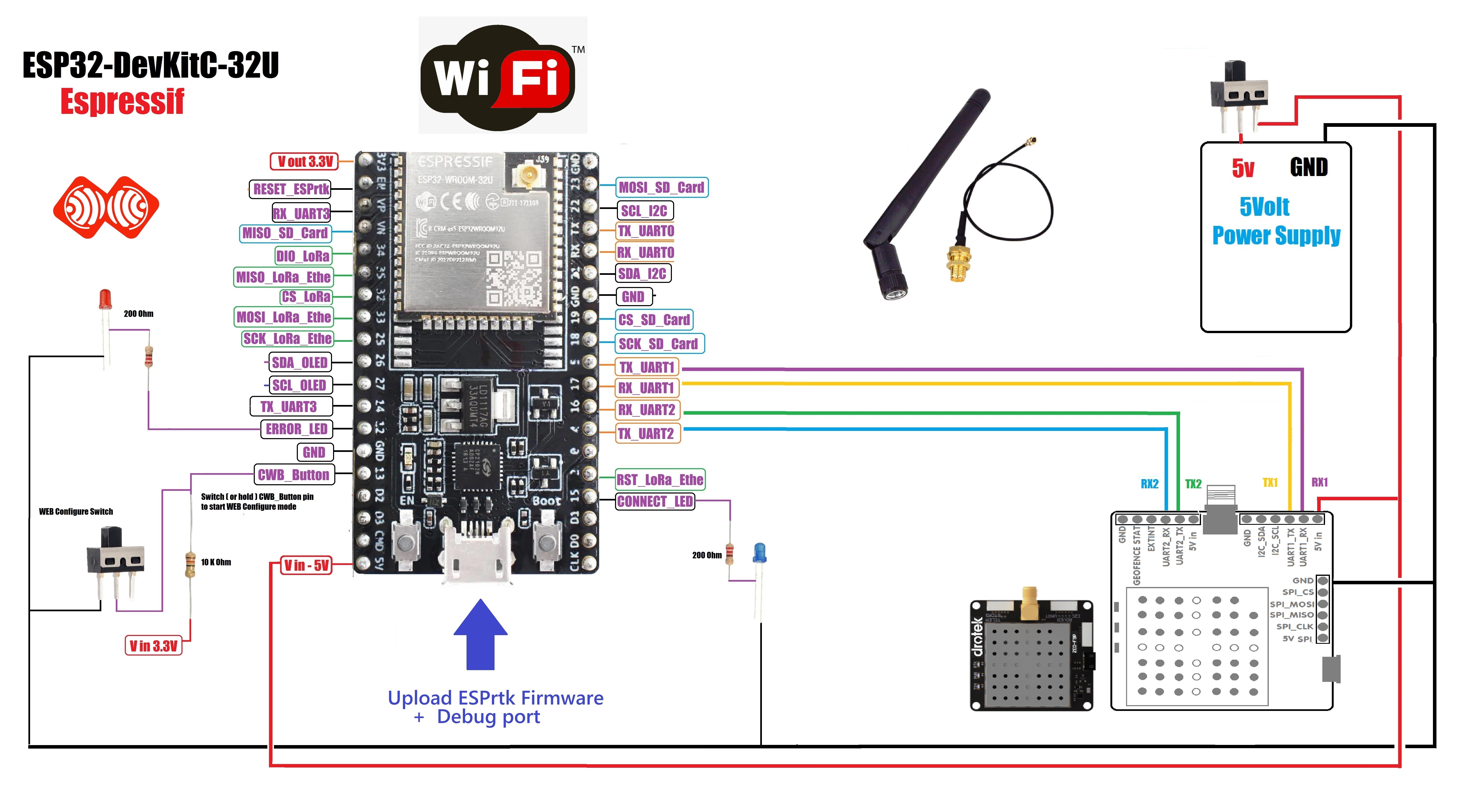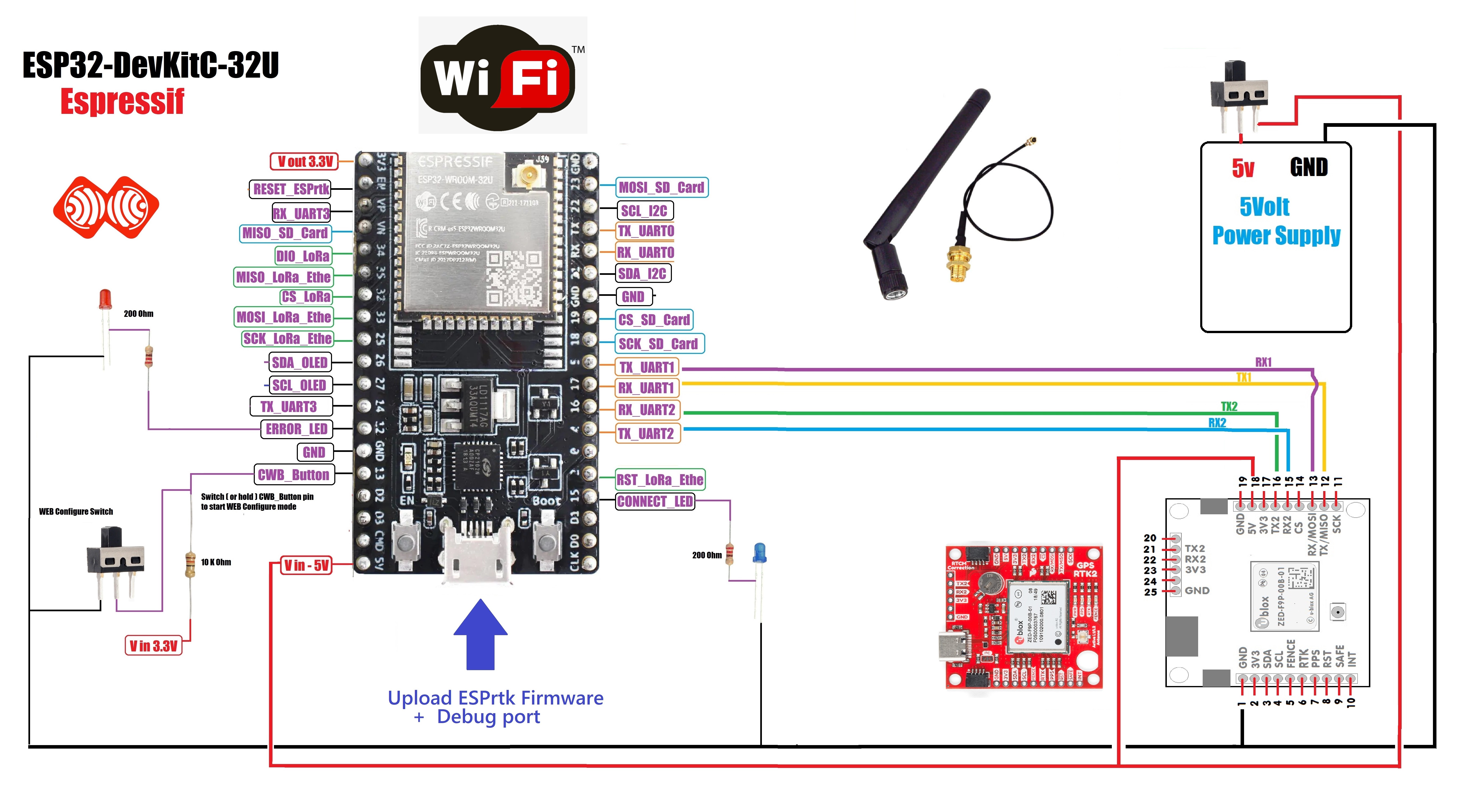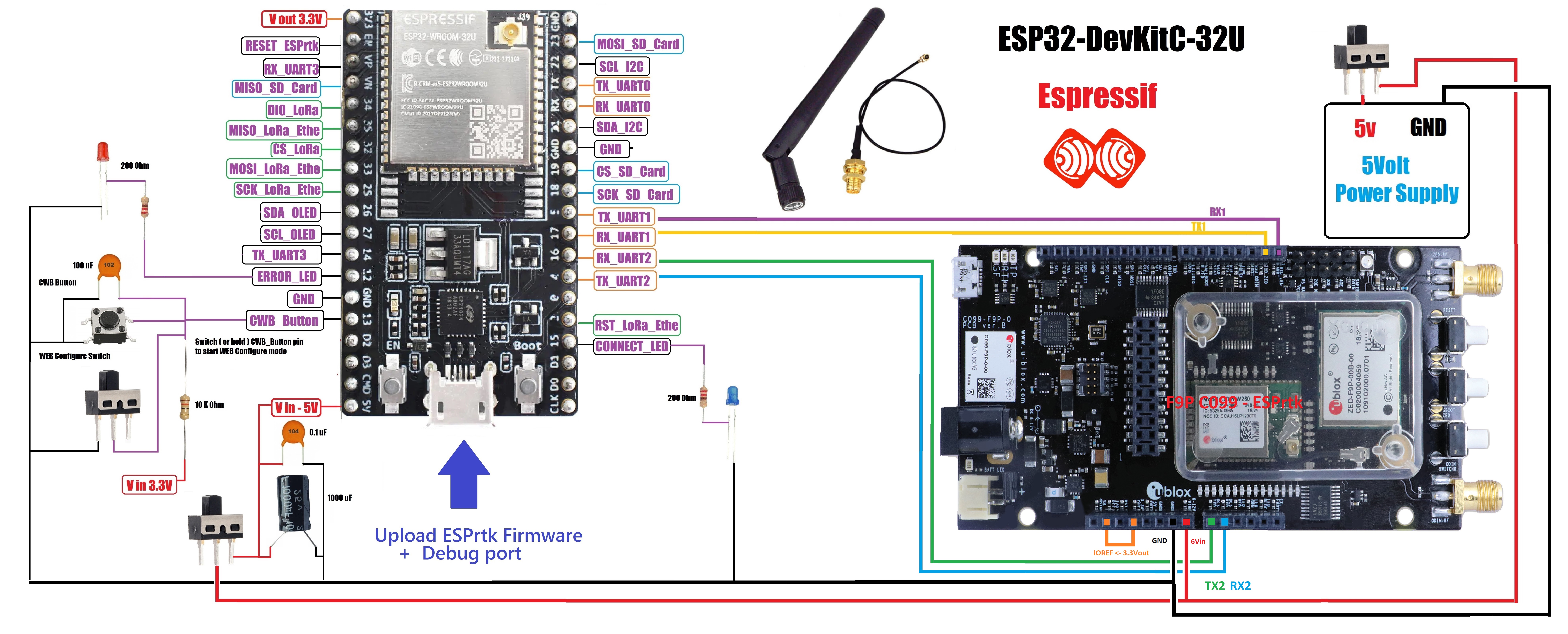 To connect ESPrtk with RTK receiver, Ethernet, OLED …, Click here for more detail.