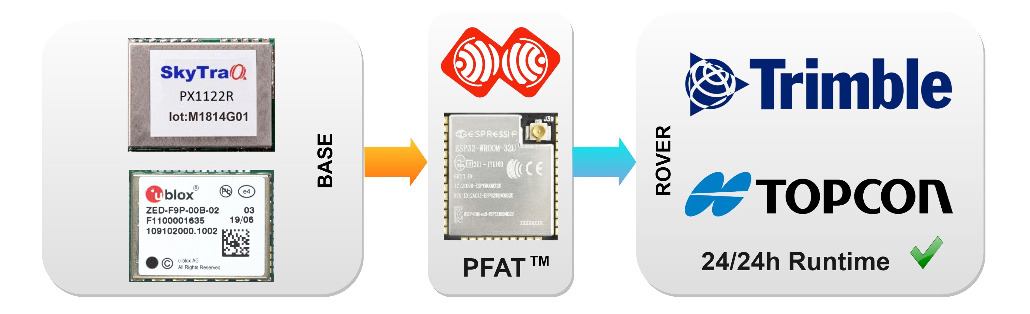 Basically the PX1122R/F9P is not manufactured to be compatible with TopCon and Trimble devices. Although the PX1122R/F9P fully supports the latest generation satellite system, L1 / L2 band and RTK RTCM3.x format, it will always be inadequate to want it to be compatible with all other brands in the world.