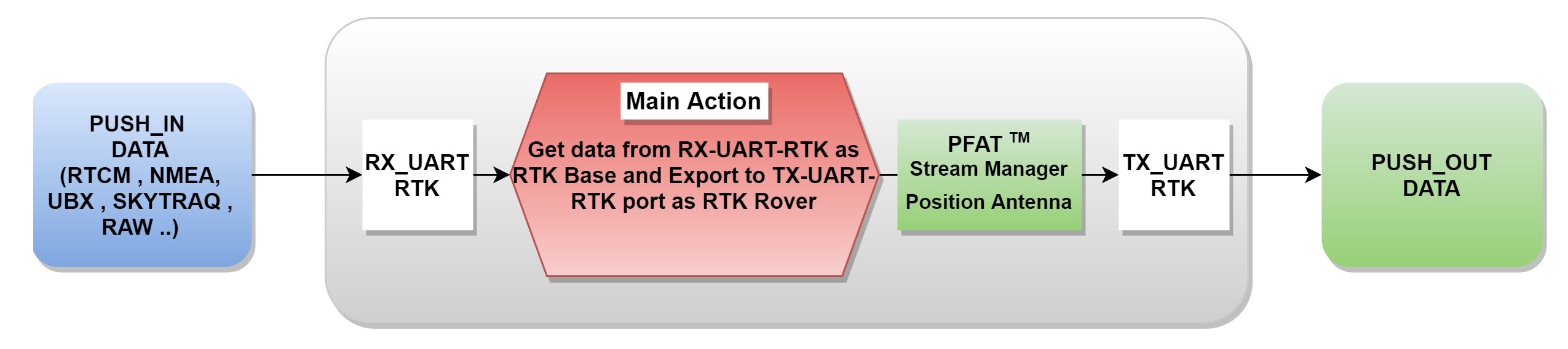 On the Base side, the RTK receiver is the Ublox F9P which acts as a Base and outputs messages RTCM 1005,1077 and 1087.