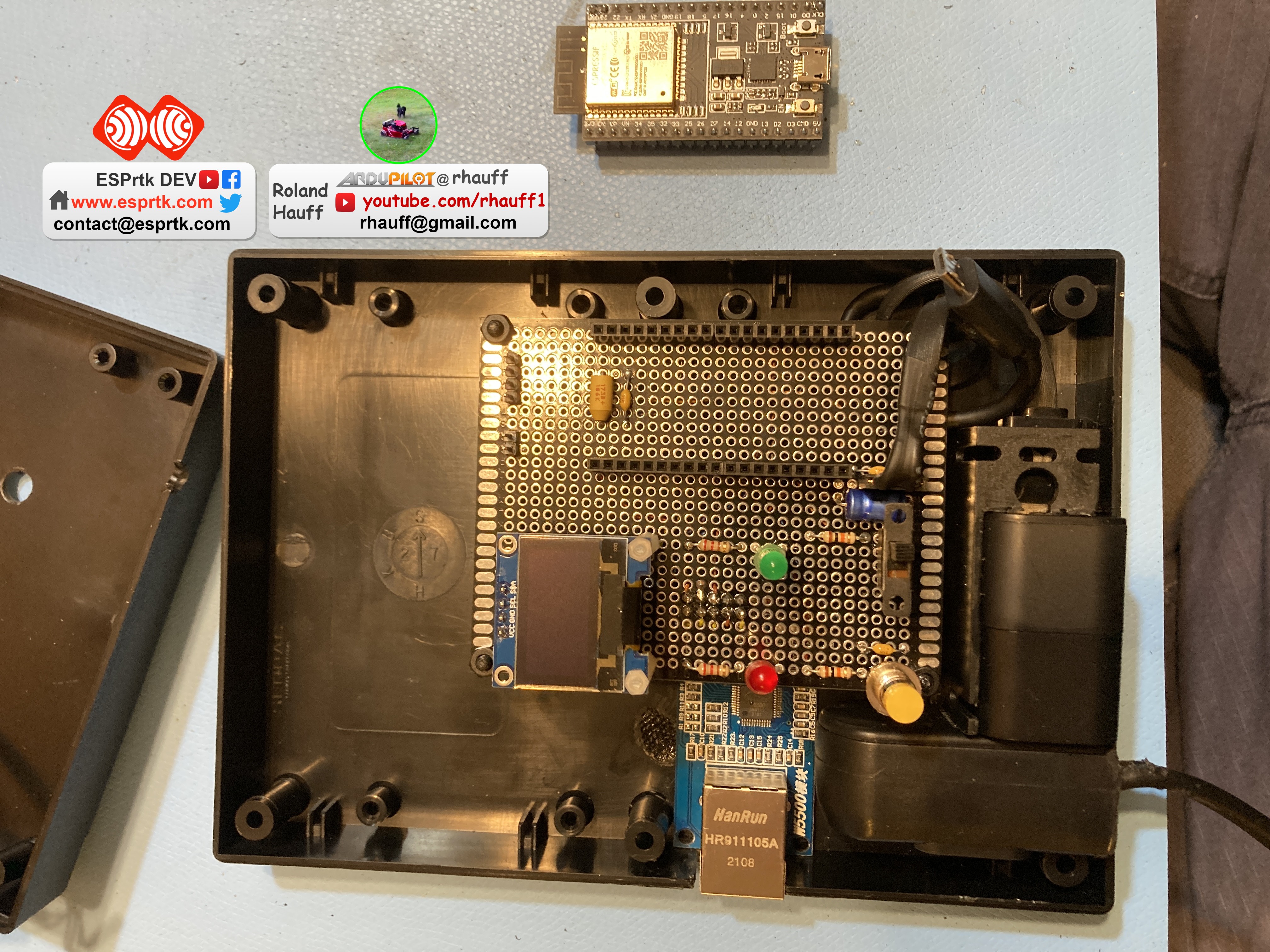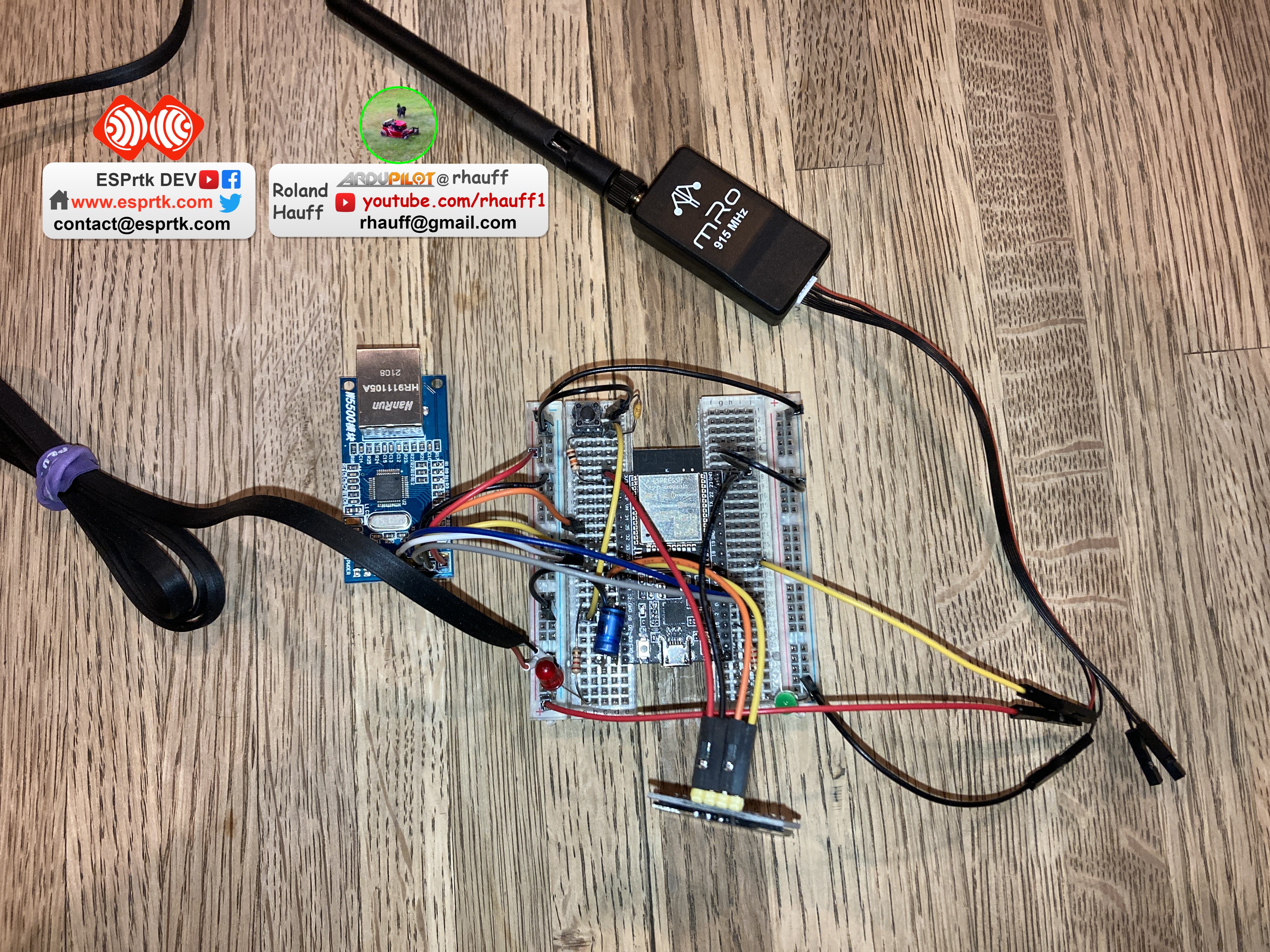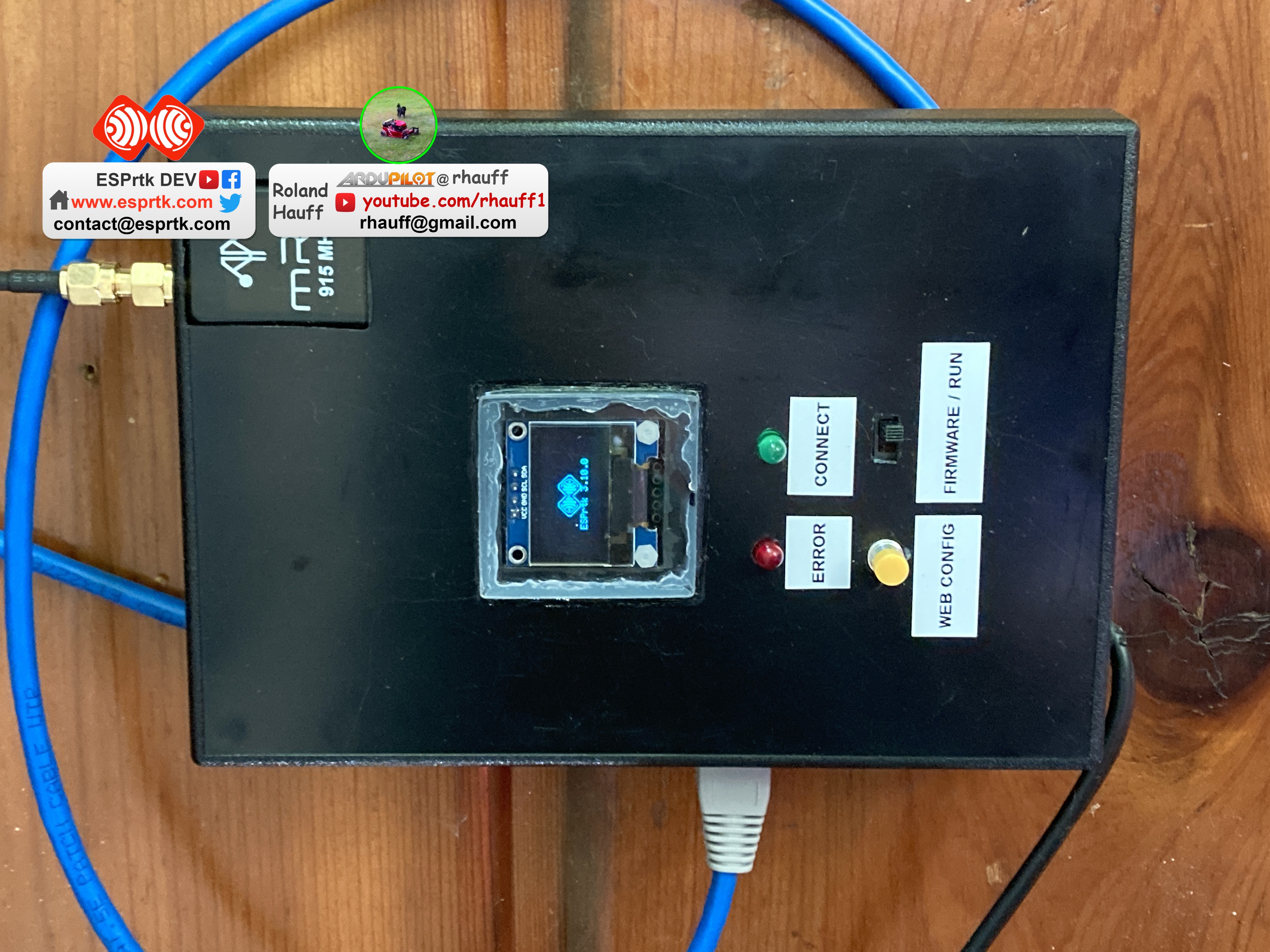 - Part 1 is the ESPrtk base which streams RTCM corrections from a public NTRIP server and broadcasts with a 900 MHZ radio.